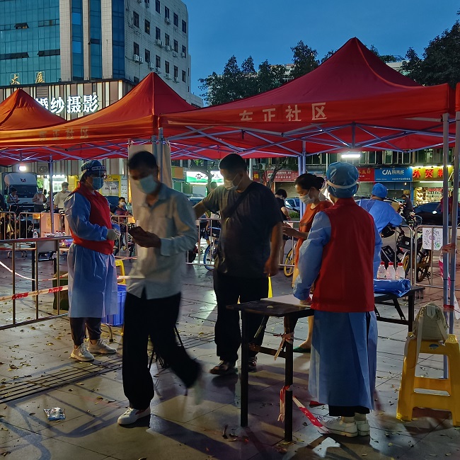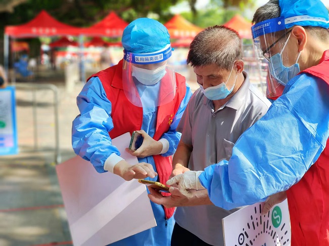 當天,志愿者們穿上紅馬甲,向市民講解檢測流程和注意事項,核驗場所打卡碼、核酸檢測碼,疏導人流,維持秩序,保障核酸采樣工作有序進行。在高溫天氣下,志愿者們身上的防護服被汗水浸濕,但他們仍然堅守崗位、盡職盡責,努力協(xié)助社區(qū)完成核酸檢測任務。晚上9時,核酸檢測支援服務結束,他們還主動留下收拾現(xiàn)場物資,堅持站好志愿服務最后一班崗,充分發(fā)揮黨員先鋒模范作用,彰顯國企形象。